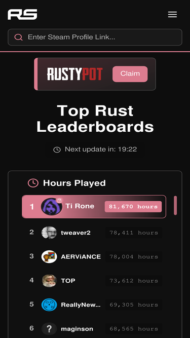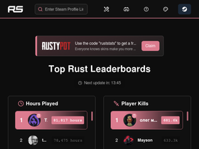 93%Rust stats and leaderboards. View anyone's stats for the game of Rust. Kills, deaths, gathered materials and more! Only @ ruststats.io
