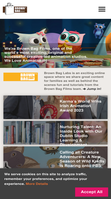 75%We're Brown Bag Films, Europe's most exciting, original and successful creative-led animation studio. We love animation.