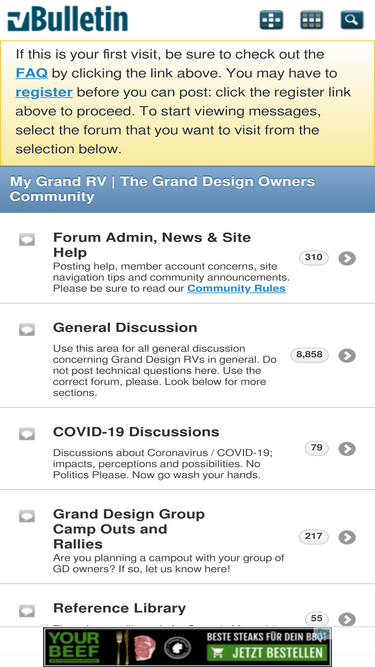 88%Welcome to the Grand Design Owners forum: MyGrandRV.com. Please take a moment to read through this discussion if you are having trouble posting or have other basic questions about how our forum works. Here are some links to find more help about using the forum (if you don't find what you need in...
