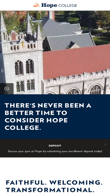 97%Hope College is a private four-year Christian liberal arts college known for its academic excellence, top-ranked undergraduate research and vibrantly welcoming community.