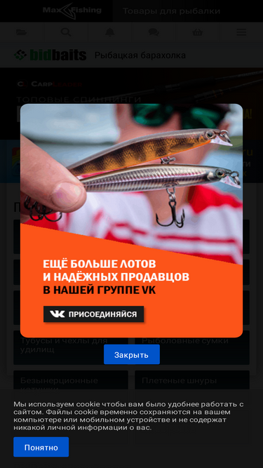 96%Объявления частных лиц и магазинов, рыболовные товары по фиксированным ценам и аукционы.