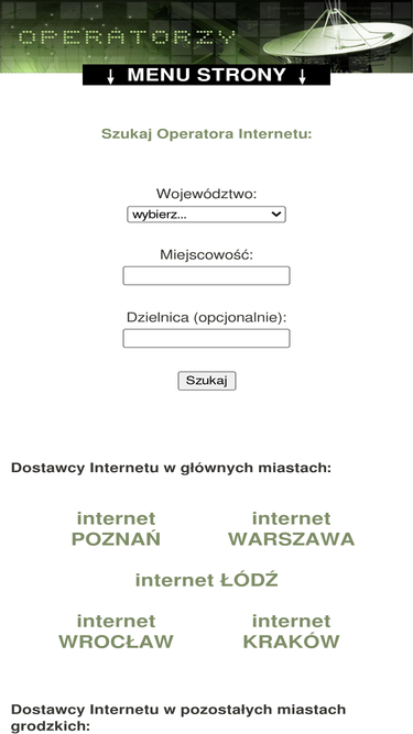 81%strona zawiera ogólnopolski katalog lokalnych operatorów - dostawców internetu. internet kablowy i bezprzewodowy.