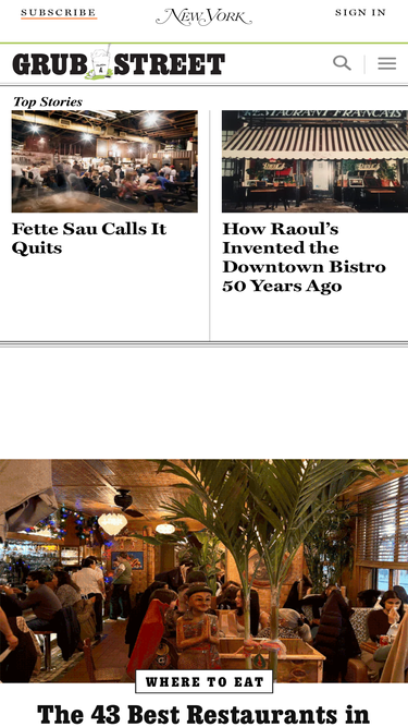 89%Grub Street is a food blog by New York Magazine with restaurant reviews, chef interviews, restaurant-openings news, and food-trend coverage.