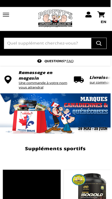 76%Popeye's Supplements offre les meilleurs compléments pour sportifs au Québec. Suppléments protéine, isolat de protéine, caséine. Découvrez nos produits!