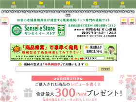 85%『サンセイイーストア』は、農機具部品を幅広く安価に、全国へお届けしています。農業機械交換用耕うん爪、各種農業機械用エレメント アクセルワイヤー・vベルト等、プロから家庭菜園農家様まで、農業機械を安全で大切にお使い頂くために、農業機械用メンテナンス・修理部品を気軽に入手出来るよう応援しています。(運営:有限会社片山農機)