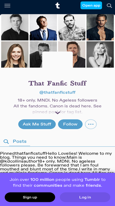 76%18+ only. MNDI. No Ageless followers All the fandoms. Canon is dead here. See pinned post for tag list. I'm a couple of decades past 18. Main is @kdcollinsauthor