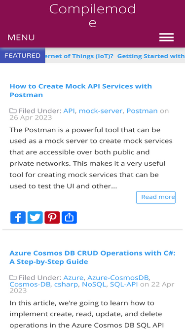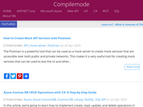 78%get started with compilemode online tutorials on iot, azure, microsoft azure and other technologies like cloud, amazon web service, aws, datavisialization, c#, networking, react, react js, angular, software development, sql, database, front end, backend, devops, bigdata, angular js, asp.net tutorials, asp.net mvc, asp.net core, .net core, tech news, asp.net,sql,c#.net, jquery, json, javascript, web api, sql server, ajax, jquery plugins,jquery ui, angularjs, oauth, facebook, twitter, google, google maps, api, xml,html,jquery demos,code,snippets, examples, articles, google charts, html5, hello world examples, microsoft ebooks,microsoft events,asp.net videos,mvc videos, introduction, getting started, demo, tutorial, step-by-step guides, code snippets, and examples to help you learn quickly and easily