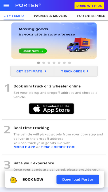 85%Porter - India's leading Goods Transport Agency, promises reliable and hassle-free transport. Porter's commitment is to make goods transport, intercity courier services.