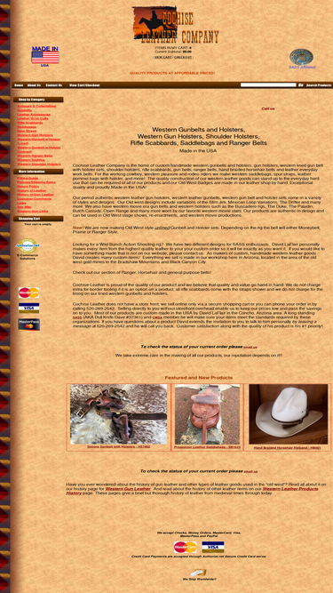 95%Custom western leather gunbelt and holsters, western gun holsters, leather shoulder holsters, western rifle scabbards, handcrafted in the USA including western saddlebags, old west spur straps, western gun belts, ranger belts, western saddles and more. Cochise Leather makes a wide variety of custom leather goods, made to order from the highest quality leather. Made in Cochise, AZ our products will stand up to everyday working use. Worldwide shipping.