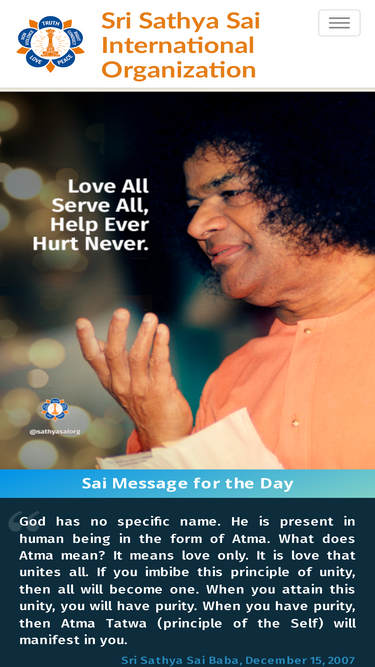 74%Esta página tem a função de difundir a mensagem de Sathya Sai, seus Ensinamentos, suas Obras de serviço e sua Organização no Brasil.