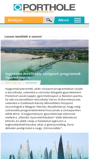 45%Online hajós magazin! Hajózás tavakon, folyókon, tengereken, túra- és versenyvitorlázás, hajóbemutatók, műhelytitkok és versenybeszámolók, praktikus hajózási tanácsok.