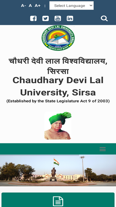 76%chaudhary devi lal university, named after chaudhary devi lal, the former deputy prime minister of india was established by the government of haryana on 2 april 2003. the university, located at sirsa 256 km from delhi and 285 km from chandigarh, has area of 280 acres on the barnala road.