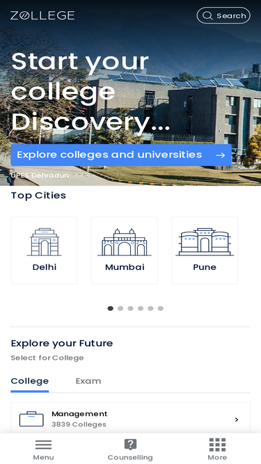 74%get detailed information on top colleges, courses & exams in india. get alerts about ranking, cutoff, placements, fees & admissions of 23,000+ colleges & universities. get question papers, syllabus & important dates of 500+ exams.