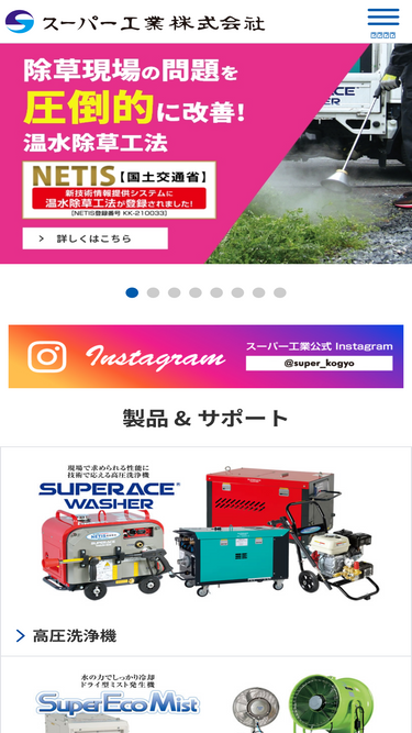 85%《洗浄機の無料出張実演も可能!》フリーダイヤル0120-927-687までお問い合わせください。スーパー工業は高圧洗浄機の専門メーカー。業務用の高圧洗浄機、高圧ポンプ、ドライ型ミスト発生装置を製造、販売しています。用途や製品タイプから最適な高圧洗浄機をお選び頂けます。
