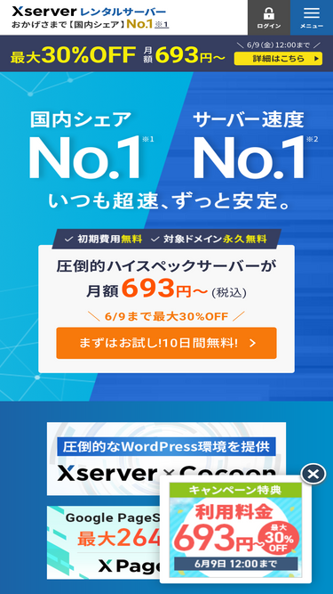 89%高速かつ高い安定性を誇る高性能レンタルサーバー【エックスサーバー】稼働率99.99%以上の高い安定性で、業界トップクラスの高コストパフォーマンスを誇る高品質レンタルサーバーです。月額990円(税込)から利用可能。まずは無料お試し10日間。