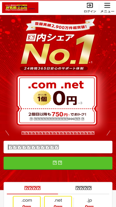お名前.comは国内最大級のドメイン公式登録サービスです。ドメイン登録実績3300万件を超えました。人気の.com .net .jpドメインを含め620種類のドメインを取り扱っております。