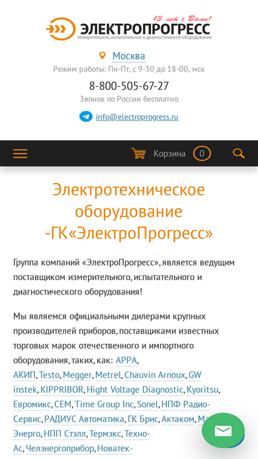 95%электропрогресс специализируется на поставках электротехнического оборудования. мы осуществляем комплексные поставки измерительного, испытательного и диагностического оборудования. ☎ +7 (499) 418-00-98