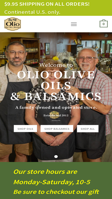 69%Contact Us Olio Olive Oils & Balsamics 41 South Broad St. Lititz, PA 17543Phone: (717) 627-0088Email: oliooliveoil@gmail.comHours: Monday-Saturday 10am-5pmClosed Sunday.