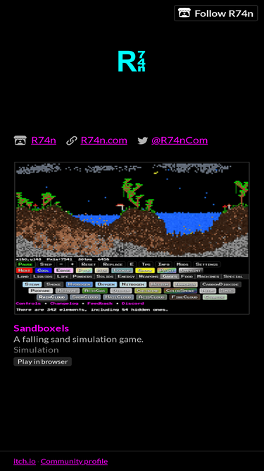 78%Relax or experiment with over 500 materials in this falling sand simulator.