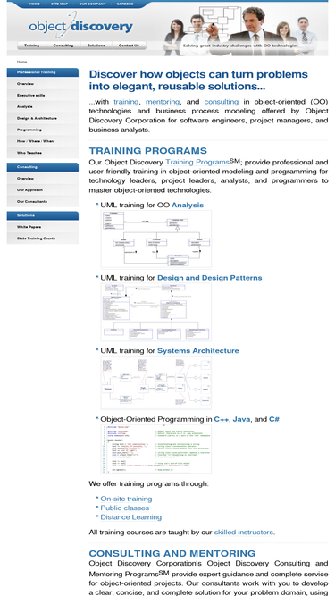 76%object oriented training in uml, java, c++, design patterns, j2ee, and business process modeling. on-site, public classes, and distant learning are available for all oo training topics.