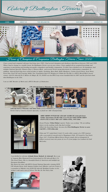 100%Elante Bedlington Terriers - a website featuring Bedlington Terrier puppies, Bedlington Terrier adults, Bedlington Terrier Champions in addition to information on Bedlington Terrier health & grooming