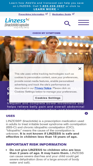 90%manage symptoms of irritable bowel syndrome with constipation (ibs-c) and chronic idiopathic constipation (cic) with linzess. see important risk information and boxed warning.