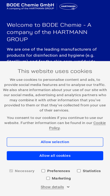 100%One of the leading manufacturers of products for disinfection and hygiene (e.g. Sterillium) and for the skin care, worldwide used in hospitals, surgeries, industry and households.