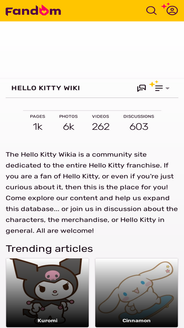 96%The Hello Kitty Wikia is a community site dedicated to Hello Kitty and the entirety of Sanrio. If you are a fan of Hello Kitty, or even if you're just curious about it, then this is the place for you! Come explore our content and help us expand this database, or join us in discussion about the characters, the merchandise, or Sanrio in general. All are welcome! Note for mobile users: this wiki is designed mainly with the desktop view in mind so some pages may look incorrect or broken