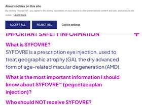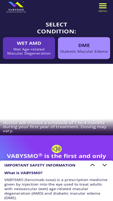 83%VABYSMO® (faricimab-svoa) is a prescription medicine given by injection into the eye used to treat adults with wet AMD, DME, and RVO.