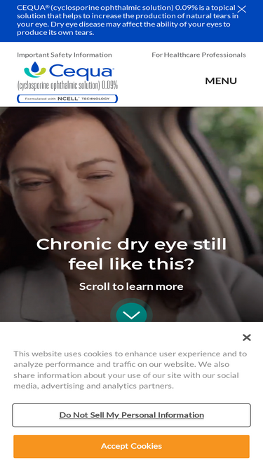73%CEQUA® (cyclosporine ophthalmic solution) 0.09% is a topical solution that helps to increase the production of natural tears in your eye.