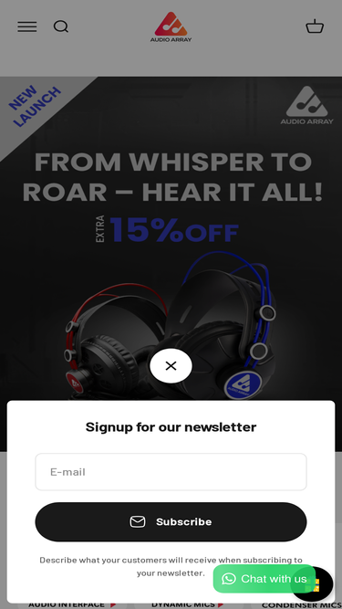 67%Explore the best condenser microphones and professional microphones for singing at AudioArray store. Find best audio interfaces to elevate your sound recording experience. Perfect for musicians, podcasters, and professionals.