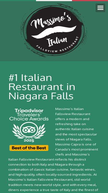 86%Massimo’s Italian Fallsview Restaurant offers a modern and refreshing take on authentic Italian cuisine and the most spectacular views of Niagara Falls. Old world tradition meets new world style, and with every meal, diners experience a true taste of Italy and the finest of Niagara Falls.