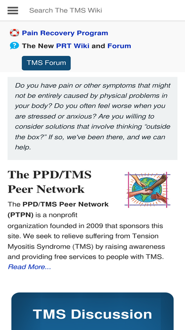 62%This subforum is about building community and supporting one another as we manage or recover from our TMS. If you would like help with your personal case, this is a great place. It is a also a great place to introduce yourself and tell your story when you first sign up.