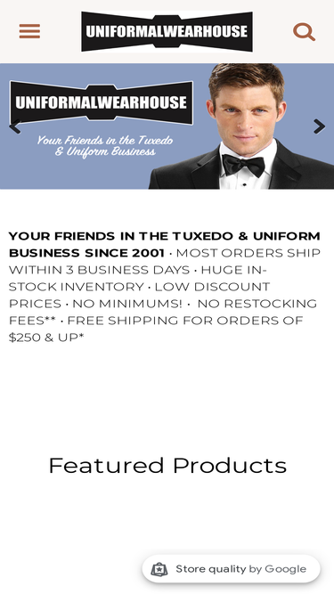 100%The ultimate tuxedo and uniform site. Featuring a vast selection ofquality tuxedos, formalwear and uniforms at incredibly low wholesale prices