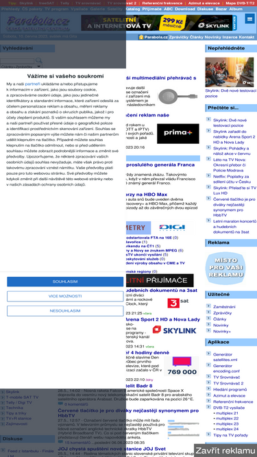 parabola.cz - web o satelitní, terestrické a kabelové televizi. zprávičky, novinky na satelitech, tv program, přehledy, diskusní fórum, bazar
