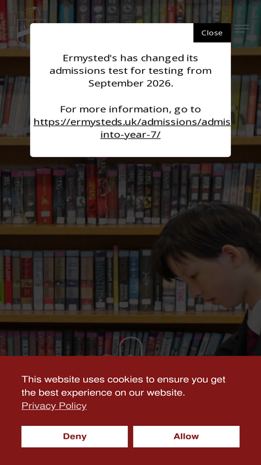 85%ermysted's is a voluntary aided, selective grammar school for boys aged 11-18 in skipton, north yorkshire. we aim to provide an inspiring and enjoyable educational environment where students have the confidence, motivation and opportunity to fulfil their potential.
