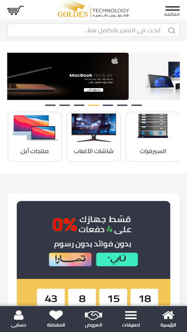 85%جميع أنواع اجهزة اللابتوب والكمبيوتر والالعاب وابل ماك والطابعات والسيرفرات وأكسسوارات الكمبيوتر بأفضل سعر بالممكلة فى مكان واحد بالتكنولوجيا الذهبيه