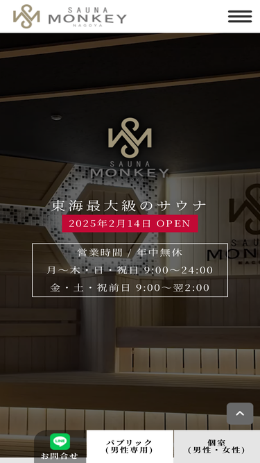 85%東海1の極上内気浴、名古屋駅から徒歩5分 SAUNA MONKEY - サウナ モンキー 予約制の個室も完備しています。
