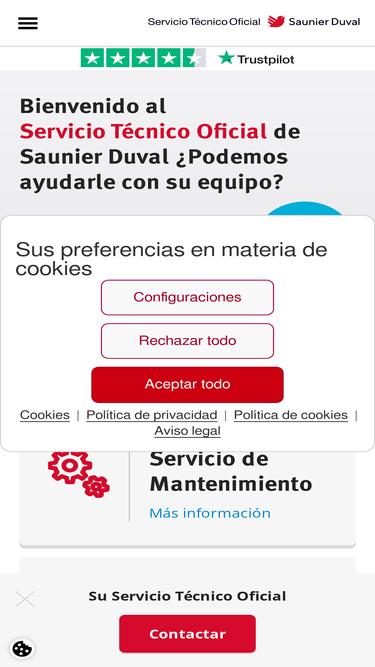 100%Solicite el mantenimiento, la reparación, el cambio y la revisión obligatoria de su caldera Saunier Duval; localice su Servicio Técnico Oficial más cercano.