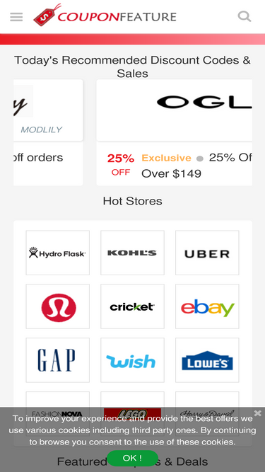 82%real time and available coupon codes savings, get the latest promos, coupons and deals of millions of stores at couponfeature.com.