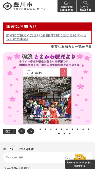 88%愛知県豊川市の公式ホームページです。市民生活に関する情報、市政に関する情報、事業者向け情報、観光情報などを掲載しています。