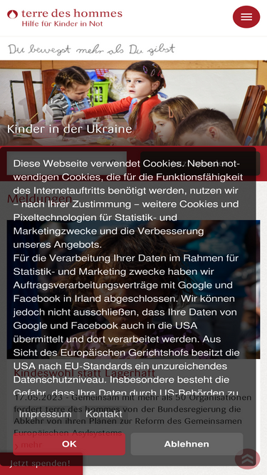 71%Die Kinderrechtsorganisation Terre des Hommes hilft Kindern in Not weltweit. Bitte unterstützen Sie unsere Arbeit mit Ihrer Spende!