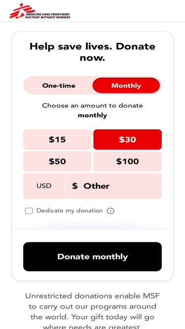 86%Support our cause by donating to Doctors Without Borders. https://give.doctorswithoutborders.org/campaign/675296/donate