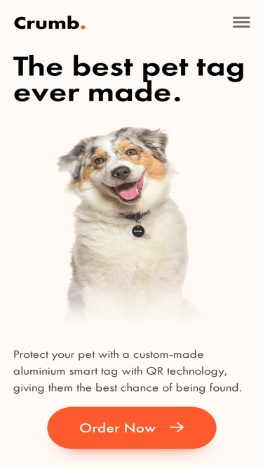 100%Custom stainless steel QR-code pet tag which links to your pet's profile. A beautifully designed light, sleek, weather-proof, bite-proof, and rust-proof smart tag made just for your pet.