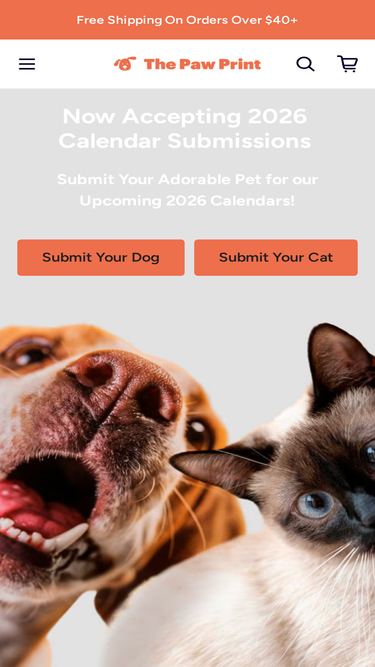 Submit your pet to be featured in our 2026 calendars! Create custom puzzles, mugs & more with your pet’s adorable photo. Every order at The Paw Print helps pets in need - Celebrate your furry friend while giving back.