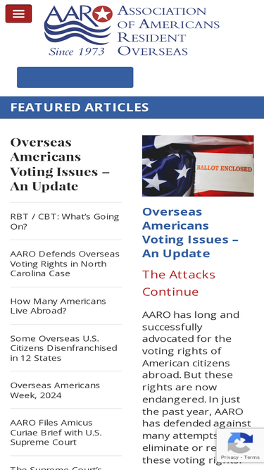 100%The Association of Americans Resident Overseas (AARO), founded in 1973 and headquartered in Paris, is an international, non-partisan association with members in 21 countries.