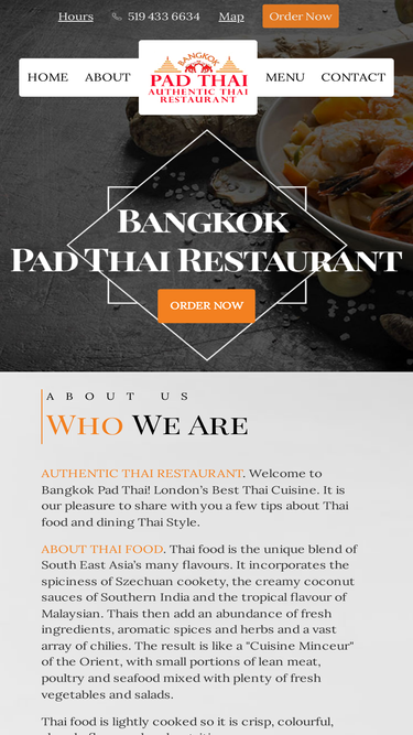 bangkok pad thai restaurant: authentic thai food on richmond row just south of oxford in london, ontario canada. phone 519 433-6634 for thai food dine-in or takeout. casual place with a warm vibe serving traditional thai dishes, such as spicy curries and noodles.