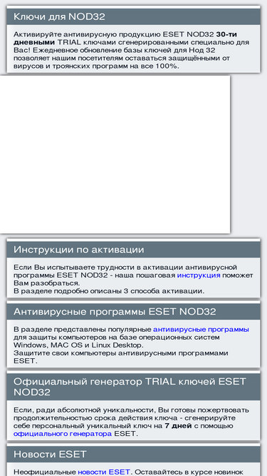 82%все для пользователей антивирусных продуктов eset: ключи активации - антивирусные программы - инструкции по активации.