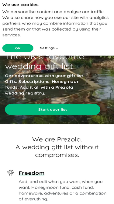 93%Prezola is the UK's favourite wedding registry and honeymoon fund. We offer free service and no hidden fees. Choose us with full confidence that we’re the best value.