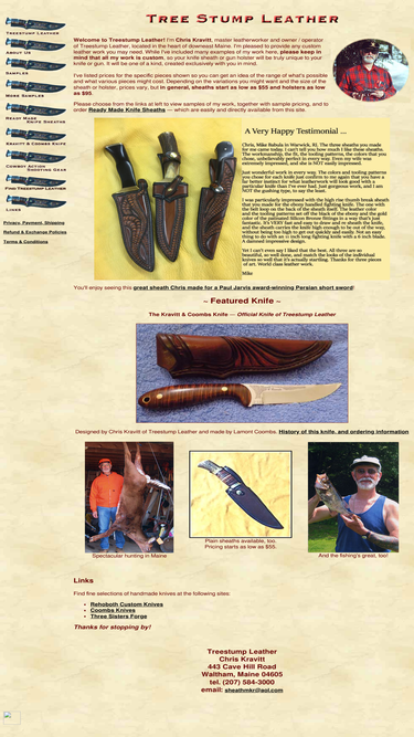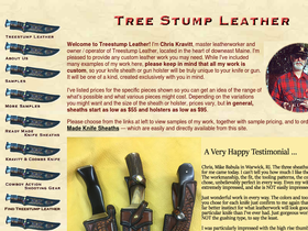 89%tree stump leather: internationally known. specializing in custom-made knife sheaths and gun holsters since 1970.